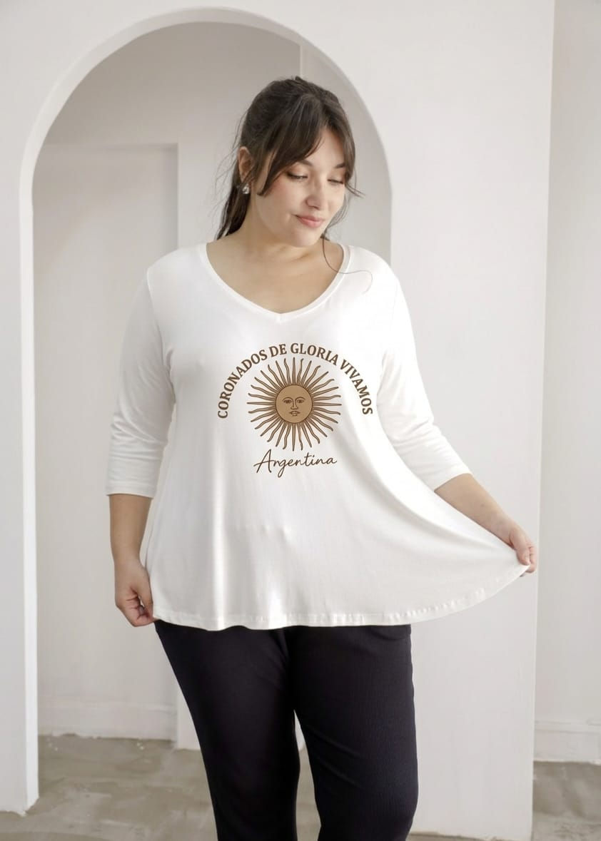 💛🌼Remera evase cuello V con manga 3/4
